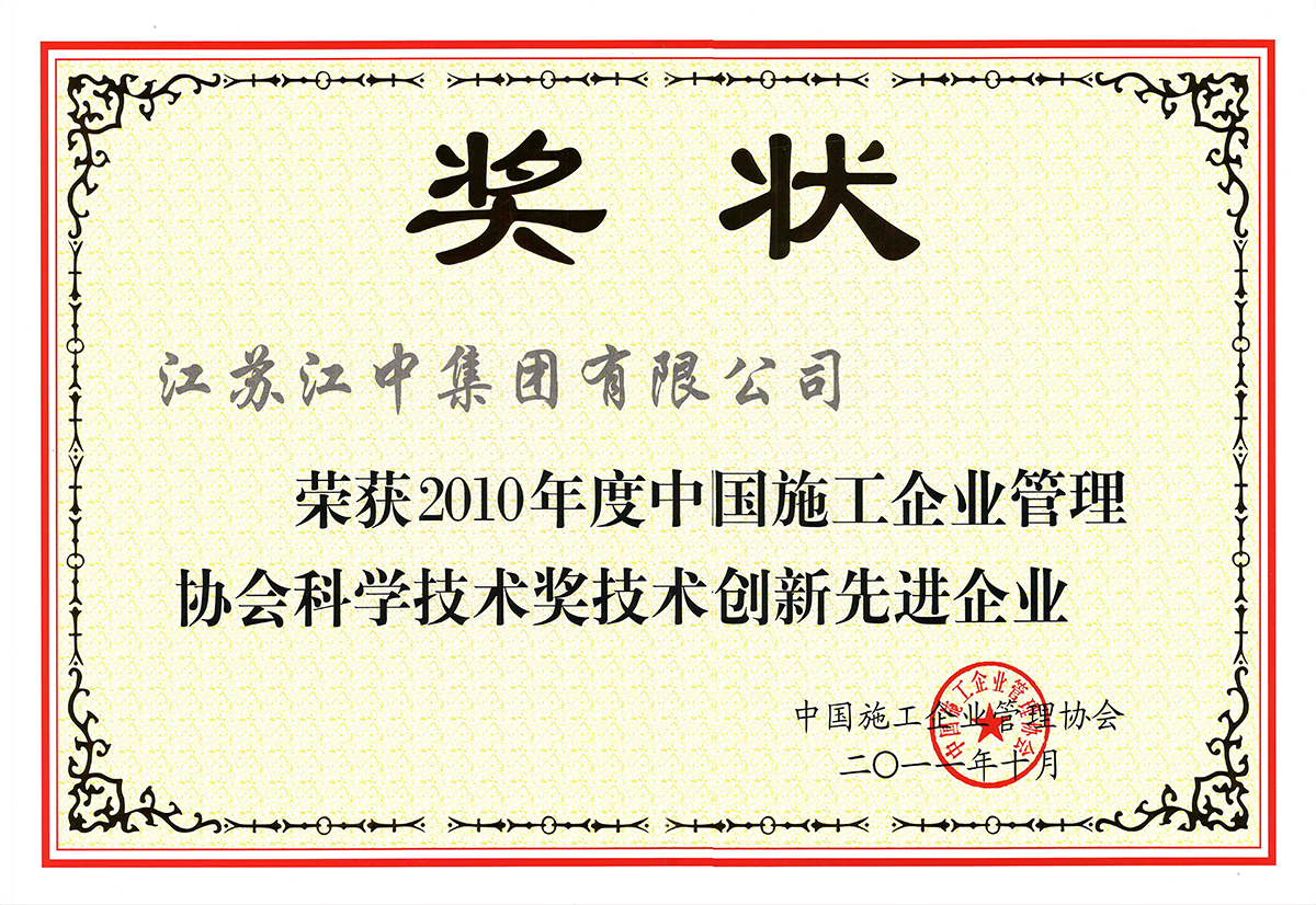 榮獲中國施工企業管理協會科學技術創技術創新先進企業