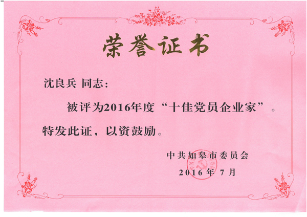 • 集團(tuán)董事長被評為如皋市十佳黨員企業(yè)家
