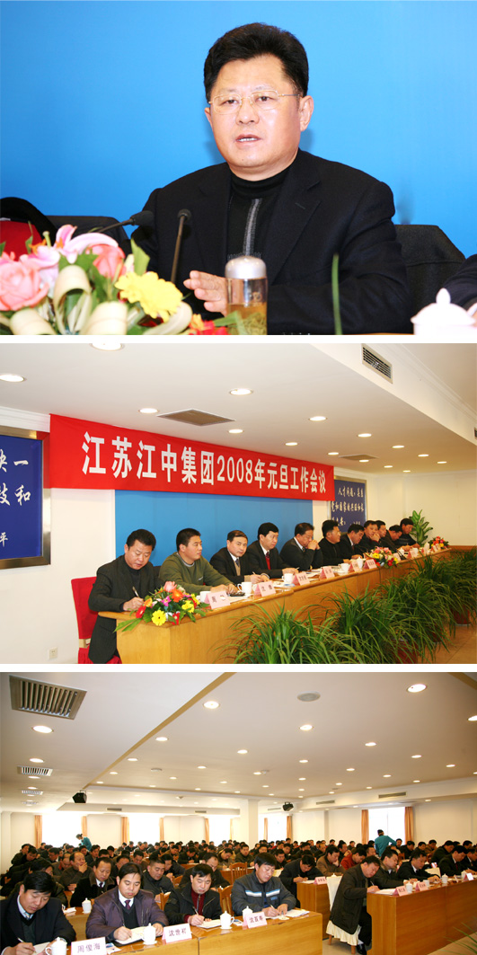 2008年元月1日至3日,江蘇江中集團(tuán)2008年元旦工作會議在集團(tuán)培訓(xùn)中心舉行。集團(tuán)領(lǐng)導(dǎo)班子成員和各土建分公司正副總經(jīng)理(大項(xiàng)目經(jīng)理),各專業(yè)公司董事長(執(zhí)行董事),各下屬公司黨支部書記、技術(shù)、安全、經(jīng)濟(jì)、財(cái)務(wù)負(fù)責(zé)人,總公司部(室)全體人員參加了會議。