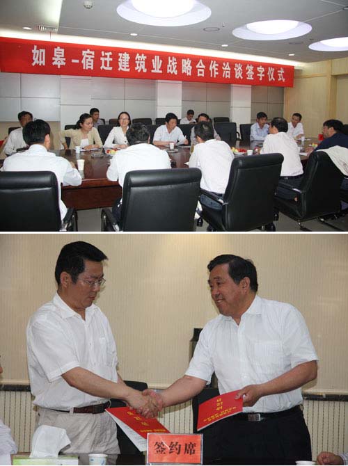 為落實(shí)省建設(shè)廳,省建工局關(guān)于展開建筑業(yè)南北掛鉤戰(zhàn)略合作的要求,集團(tuán)公司和宿遷市建筑集團(tuán),宿遷市中原建筑公司兩家建筑企業(yè)掛鉤開展合作,6月9日下午在市建工局舉行洽談簽字儀式。省建設(shè)廳建筑業(yè)發(fā)展與綜合處鄒金林處長(zhǎng)、李波副處長(zhǎng),宿遷市建設(shè)局吳局長(zhǎng),如皋市建工局馮晰局長(zhǎng)等領(lǐng)導(dǎo)出席儀式并講話。沈岳總裁代表集團(tuán)與兩家企業(yè)簽署合作協(xié)議,雙方合作形式有聯(lián)合投標(biāo),工程分包,勞務(wù),共同投資開發(fā),掛職學(xué)習(xí)等多種形式,力爭(zhēng)達(dá)到雙贏。