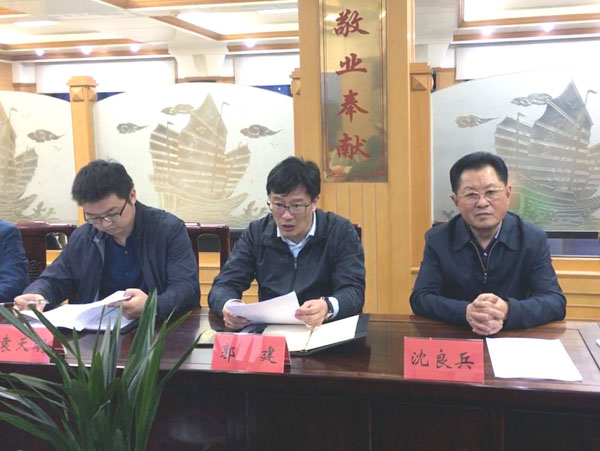 20171017日,如皋市委書記陳曉東帶領市人大常委會副主任陳萬圣及相關部門負責人到集團調研指導。集團董事局主席沈良兵、黨委書記沈岳、總裁沈鋒接待了陳書記一行。