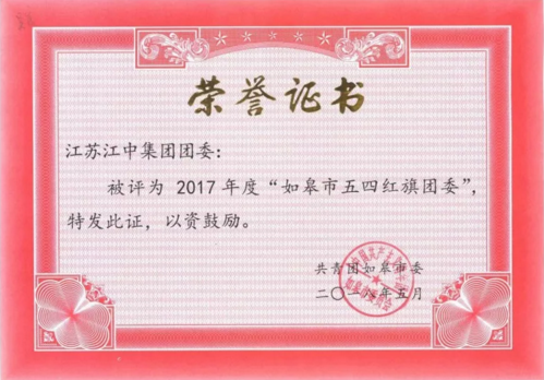江蘇江中集團團委獲評“如皋市五四紅旗團委”