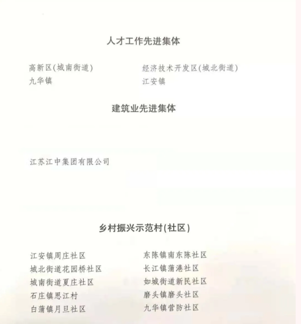 江中集團榮獲如皋市建筑業先進集體