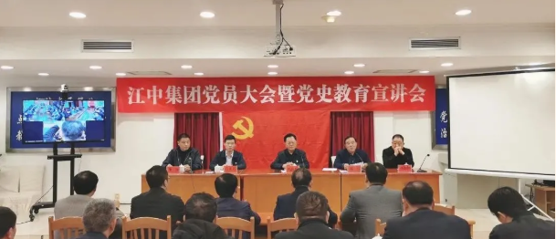 近日,集團召開了黨員大會暨黨史教育宣講會,集團董事局主席沈良兵,黨委書記沈岳,總裁沈鋒,集團黨委副書記、紀檢書記、江中房產公司董事長環加和,吳窯鎮組織委員石光富及集團總公司和近區域分公司支部黨員參加了會議并同步遠程連接部分分公司黨支部參會。