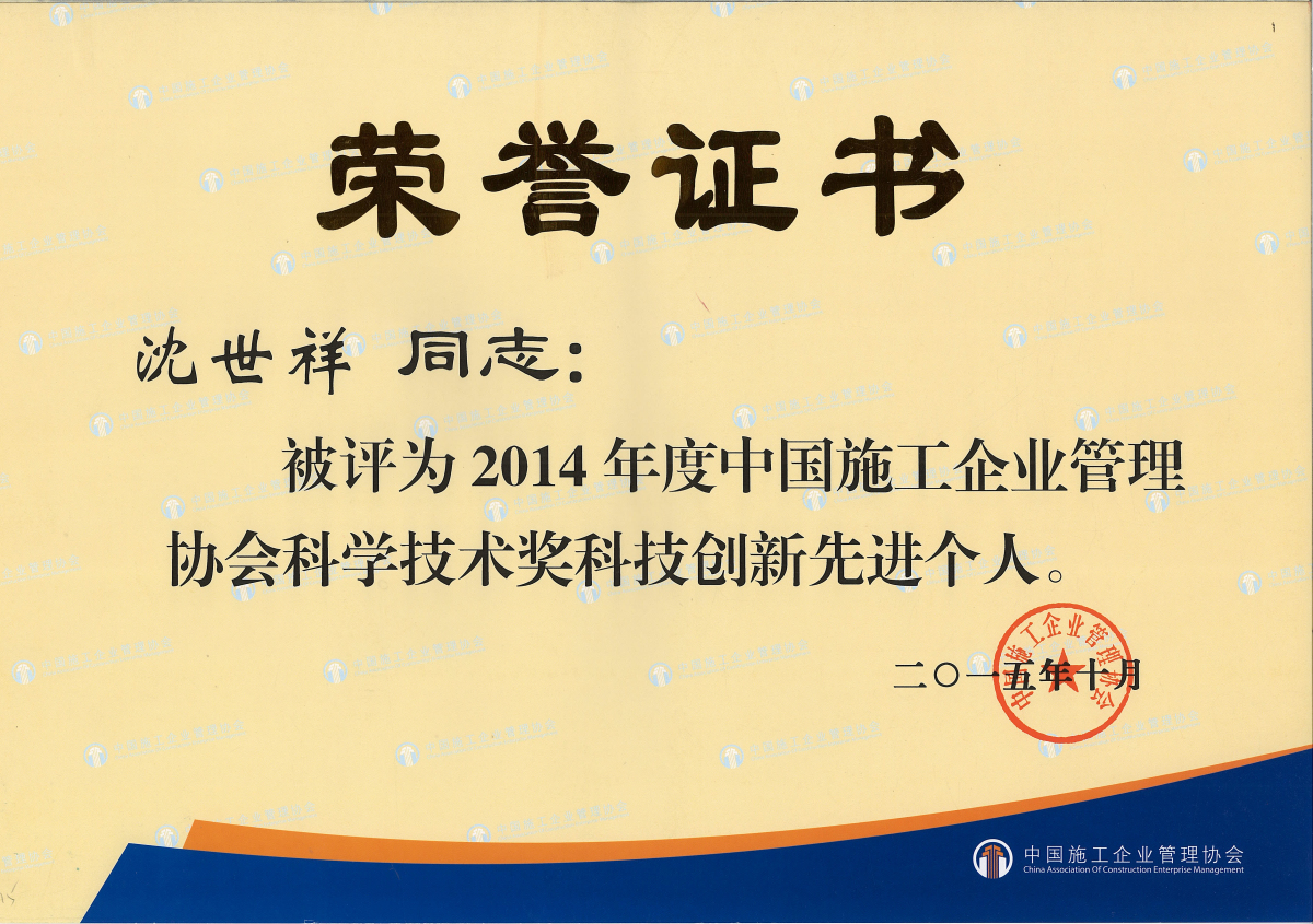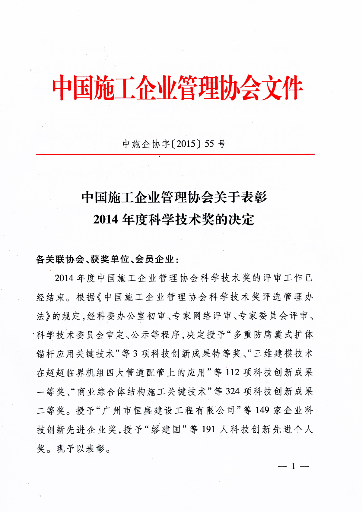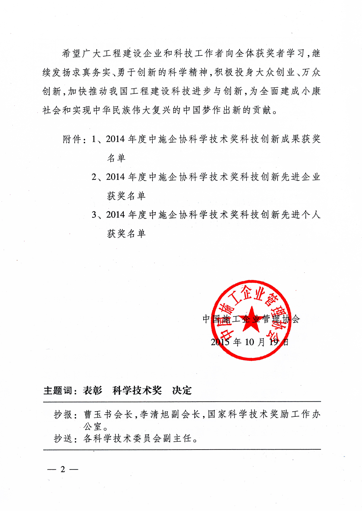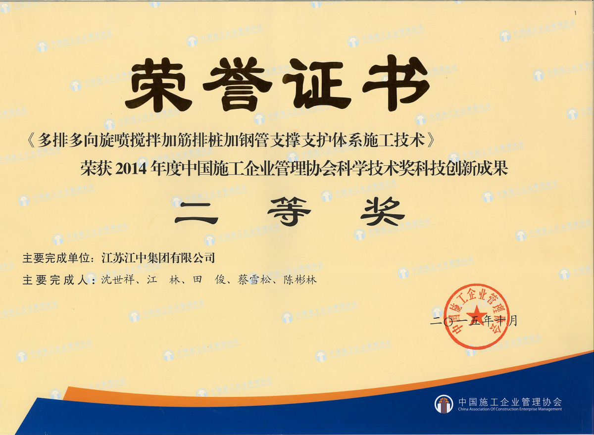 2014年度科學(xué)技術(shù)獎(jiǎng)科技創(chuàng)新成果-中施協(xié)二等獎(jiǎng)