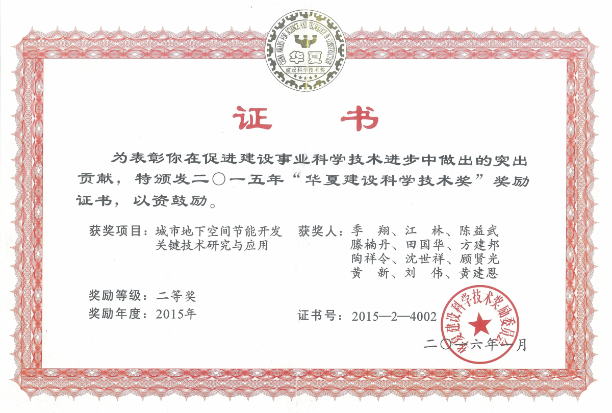 2015年度華夏建設科學技術獎-二等獎